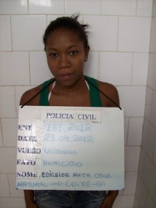 Uma hora após ter assassinado o companheiro a facadas, no bairro Matadouro, em Conceição do Coité, Edileide Mota Cruz, a “Leidinha”, de 22 anos, foi presa pela equipe do delegado João Farias, titular da Delegacia Territorial (DT) daquele município. O assassinato de Edmilson Pereira dos Santos, 31, que havia consumido bebida alcoólica com a mulher durante todo o dia, aconteceu por volta de 22 horas, em via pública, tendo o delegado autuado “Ledinha” em flagrante por homicídio.