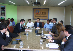 Um dos maiores projetos de irrigação da Bahia, implantado há mais de duas décadas pela Companhia de Desenvolvimento do Vale do São Francisco e do Parnaíba (Codevasf), o Distrito de Irrigação Formoso, no município de Bom Jesus da Lapa, terá substituído e modernizado o sistema de irrigação atendendo aos pequenos agricultores, numa área de 2.407 hectares. Este é um dos acordos firmados pelo governo do Estado, através da Secretaria da Agricultura e a Codevasf, durante reunião do secretário Eduardo Salles com o presidente da companhia, Elmo Vaz Bastos de Matos; o superintendente regional, Lourival Gusmão; os diretores Guilherme Almeida Sólon Braga, e o chefe do escritório em Salvador, Leandro Sérgio Pontes, além de produtores.