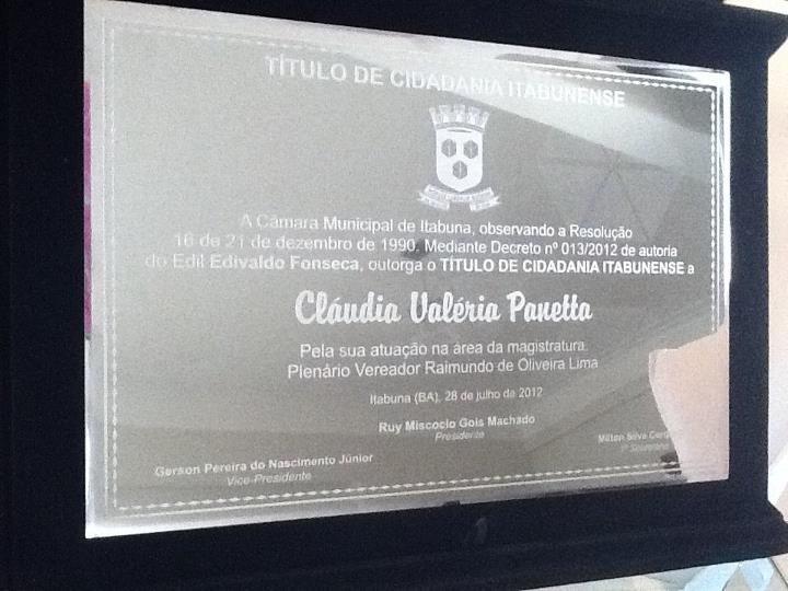 O título de Cidadã Itabunense à Dra. Claudia Panetta é o reconhecimento a uma mulher de fibra e um alento aos que acreditam que é possível, sim, enfrentam a tormenta e sair dela maior do que entrou, quando se caminha o bom caminho.