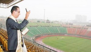 Tricolor de fé, o padre Luis Simões, da igreja da Vitória, em Salvador, benzeu o elenco do Bahia e o Estádio de Pituaçu antes do jogo contra o Atlético de Goiás.