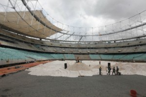O gramado deve ser concluído no dia 20 deste mês e vai passar por um processo de irrigação, com 35 pontos ao longo do campo, que terá 105 metros por 68 metros, com uma distância de apenas 10 metros nas laterais e 12,30 metros nas linhas de fundo.