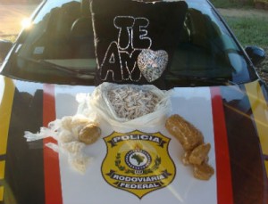 A apreensão ocorreu durante a fiscalização a um ônibus interestadual que fazia a linha São Paulo/SP – Patos/PB. Após revista no interior do veículo, as substâncias entorpecentes foram encontradas camufladas no interior de uma almofada de cor preta.