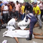 Um acidente com uma motocicleta de cor preta e placa NYW-1108 deixou duas pessoas mortas no final da manhã desta segunda-feira (18), na rotatória do bairro São Caetano, em Itabuna.