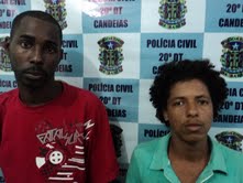 Robson da Silva Conceição, de 21 anos, e Deivison Batista Ferreira, 29, foram presos por policiais civis e militares, na noite de domingo (24), quando tentavam comprar bebida alcoólica com dinheiro falso, na região de Candeias. Denunciados pelo dono do bar, situado no distrito de “Passagem do Teixeira”, os falsários estavam com três cédulas falsificadas de R$100, adquiridas, segundo informaram, em uma feira livre na cidade de Simões Filho.