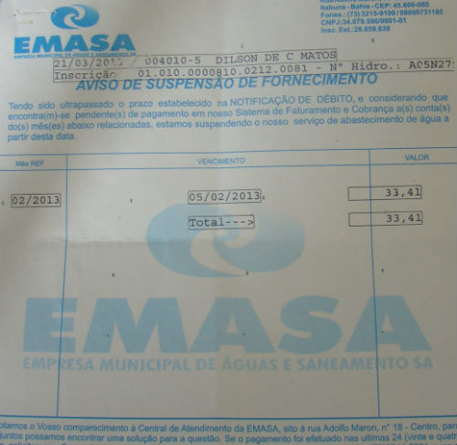 A Emasa, empresa de água e saneamento de Itabuna, deve ter adotado o calendário maia ou qualquer outro calendário que transforma trinta dias em dois dias.