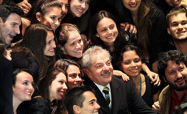 Lula foi ovacionado pelos jovens, muitos deles com acesso à universidade graças às políticas de inclusão social do governo petista.