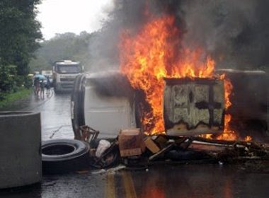 Produtores rurais bloqueiam BR 101 e incendeiam carro do Incra no Sul da Bahia