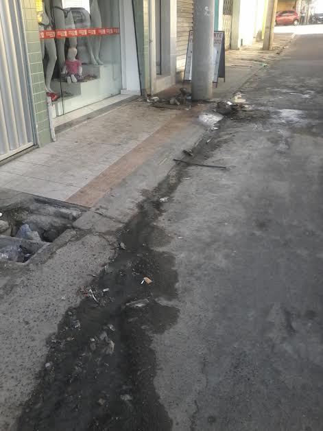 É o caso de um esgoto estourado há uma semana na rua 13 de maio, centro de Itabuna.]