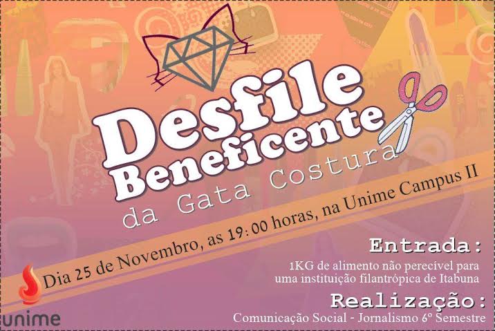 Acontece na próxima quarta-feira (25/11) desfile beneficente realizado na Unime Itabuna pelos alunos do curso Comunicação Social com habilitação em Jornalismo.