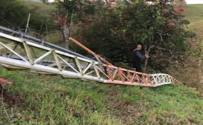 A torre que sintoniza a Cacau FM no município de Ibicaraí foi encontrada caída na madrugada desta segunda-feira (14) em uma fazenda onde estava instalada. Segundo a sócia gerente da rádio, Nildete Silva Cruz, o ato foi criminoso.