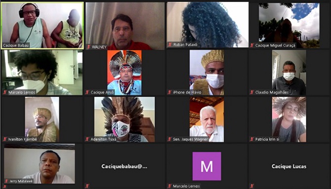 O Movimento dos Povos e Organizações Indígenas da Bahia – MUPOIBA, realizou uma live, hoje (21), com o senador Jaques Wagner (PT), e lideranças indígenas de todo o estado. Na oportunidade foi discutido com o senador o Plano Estadual de Política Indigenista, previsto em PPA 2021/2023, a criação da Superintendência de Política para os Povos Indígenas no estado, o apoio da bancada do PT pela demarcação das terras indígenas da Bahia, a ampliação do aporte de recurso para serem investidos na infraestrutura de produção nas comunidades indígenas, além da alteração urgente da Lei 12046 de 04 de janeiro de 2011 que cria a categoria de professor indígena para garantir a melhoria salarial dos professores indígenas, e a realização novo concurso público para professores indígenas.