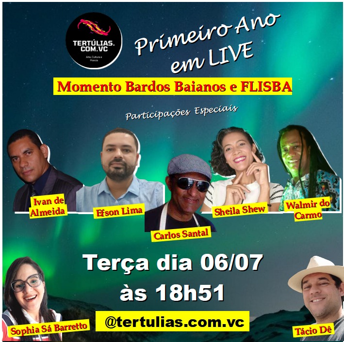 Para comemorar um ano de atividade do Projeto de Difusão Cultural Tertúlias com VC, canal no Instagram, vai realizar uma Super Live Especial de Aniversário hoje, 06 de julho, terça-feira, a partir das 18:51min.