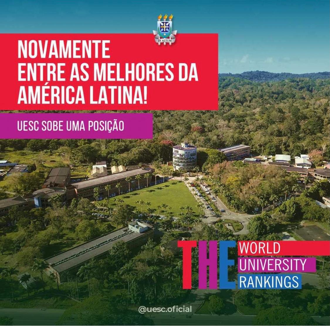 A Universidade Estadual de Santa Cruz-UESC está incluída novamente no Times Higher Education Latin America University Rankings(THE). O Times Higher Education Latin America University Rankings lista as melhores universidades da região da América Latina e do Caribe.