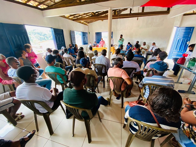 A Prefeitura de Itacaré, por meio da Secretaria de Agricultura, Aquicultura e Pesca, realizou nesta quarta-feira, no distrito de Taboquinhas, uma reunião com os agricultores para discutir sobre o financiamento de crédito para fortalecimento e recuperação da lavoura de cacau. Participaram do encontro o presidente do Conselho Municipal de Desenvolvimento Rural Sustentável, José Ferreira Bubu, os representantes do Banco do Nordeste e do Banco do Brasil, os vereadores Miguel da Matinha e Renilson Ramos, representando a Câmara Municipal, pequenos agricultores, além dos técnicos que serão responsáveis pela elaboração dos projetos dos produtores interessados em adquirir o financiamento.