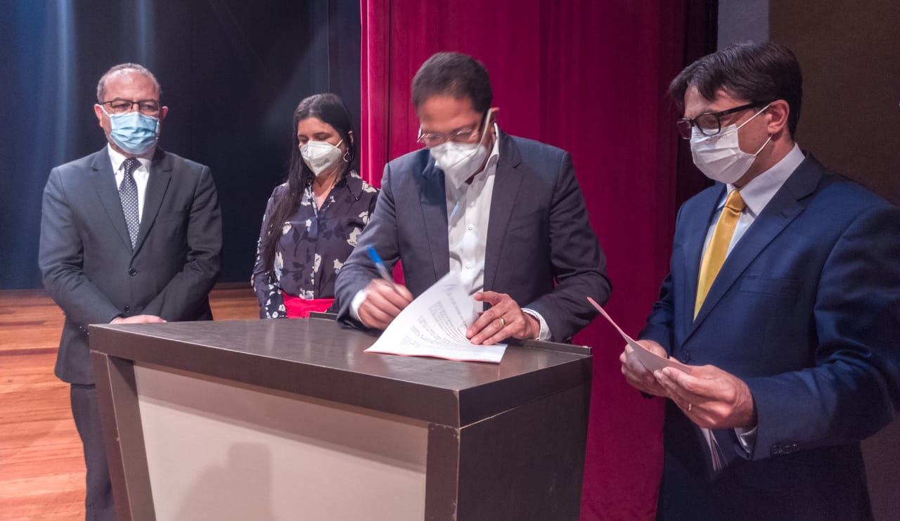 Com a proposta de dar regularidade jurídica às contratações de pessoal da Administração municipal, o prefeito Augusto Castro (PSD) assinou um Termo de Ajustamento de Conduta (TAC) com o Ministério Público da Bahia Regional Itabuna, por meio da promotora pública Susila Ribeiro Machado. A cerimônia aconteceu na manhã desta quarta-feira, dia 29, no Teatro Candinha Doria, contando com a participação de secretários municipais, vereadores e representantes da sociedade.
