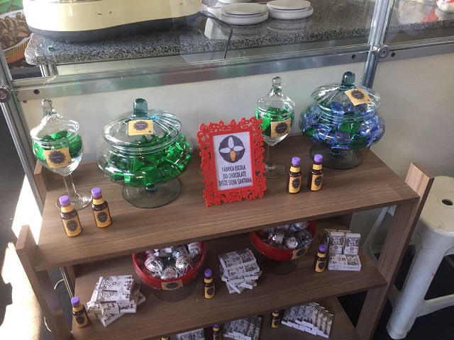 As barras e trufas de chocolate, que variam de 53% a 70% de cacau ao leite e 100% orgânico das respectivas regiões, são produzidas sem o uso de conservantes e com açúcar demerara nas fábricas-escolas do Centro Estadual de Educação Profissional (CEEP) do Chocolate Nelson Schaun, em Ilhéus; do CEEP da Floresta do Cacau e do Chocolate Milton Santos, em Arataca; do Centro Territorial de Educação Profissional (CETEP) do Baixo Sul, em Gandu; e do CETEP Médio Rio das Contas, em Ipiaú. Além disso, também estão sendo expostos carnes de sol, charque, linguiça, doces e compotas da Fábrica-escola da Carne de Sol, do CETEP do Médio Sudoeste da Bahia, localizado em Itororó.