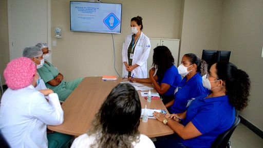 O Núcleo de Segurança do Paciente, do Hospital Materno-Infantil Dr. Joaquim Sampaio, em Ilhéus, está promovendo uma série de encontros com trabalhadores da instituição com o objetivo de esclarecer sobre as medidas de controle de acesso de acompanhantes à unidade hospitalar. As medidas cumprem as orientações técnicas do Centro de Operações de Emergência em Saúde (COES) sobre o funcionamento dos serviços de saúde na vigência da pandemia pela Covid-19. A ideia é, para além dos protocolos já orientados pela Secretaria Estadual da Saúde e pela Agência Nacional de Vigilância Sanitária (Anvisa), dirimir possíveis dúvidas a respeito de algumas orientações estabelecidas pelo próprio núcleo, visando garantir a segurança dos usuários e dos próprios trabalhadores da instituição.
