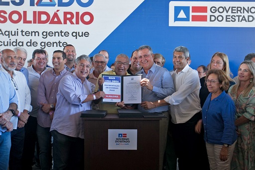 Nesta terça-feira (12), o Governo do Estado firmou centenas de convênios com prefeituras baianas para a execução de obras nas áreas de saúde, educação, esporte e desenvolvimento urbano e rural. A assinatura das ordens de serviço foi realizada no Parque de Exposições, em Salvador, com a presença do governado Rui Costa.
