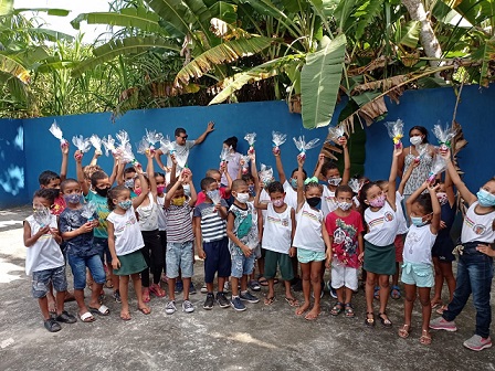 Estudantes do CEEP do Chocolate em Ilhéus doam ovos de Páscoa para escola infantil