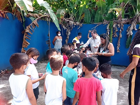 “As crianças ficaram muito felizes em receber esse presente de Páscoa e para os nossos alunos foi um momento de servir a comunidade”, afirma a coordenadora da fábrica-escola do CEEP Nelson Schaun, professora Alessandra Bueno. O diretor do CEEP, Julierme Barros Couto também participou da entrega dos Ovos de Páscoa.
