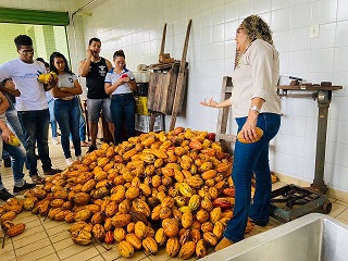 Uma das atividades é o curso de Beneficiamento de Cacau de Qualidade, para turma de Engenharia de Alimento, coordenado por Tatiana Botelho, da Rede de Agroecologia Povos da Mata e da Muká Plataforma Agroecológica, consultora da T&C Service.