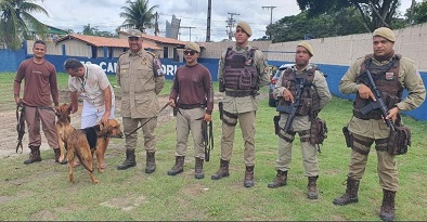 O morador de Porto Seguro aproveitou para conhecer o canil do 8º BPM e agradecer, com abraços e brincadeiras, às cadelinhas especialistas em mantrailing (técnica que consiste na busca específica do cheiro de um indivíduo, descartando outros odores).