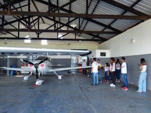 Dando continuidade à visita foi abordado temas da logística e eletromecânica que se relacionam com a aviação. Após explanação, os alunos foram convidados para conhecer as aeronaves utilizadas pelo Aeroclube na formação de pilotos, pois a instituição trata-se de uma escola de aviação e oferece os cursos de agente de aeroporto, comissório de voo e piloto.