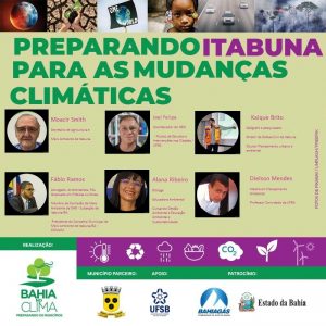 O programa Bahia no Clima, iniciativa particular que tem o apoio do Governo do Estado através da BahiaGás e parceria da Prefeitura de Itabuna, realizará na próxima quinta-feira, 6, às 9 horas, no auditório da Secretaria Municipal de Planejamento, mais um ciclo de debates, sendo que desta vez com base na temática “Preparando Itabuna para as mudanças climáticas”.
