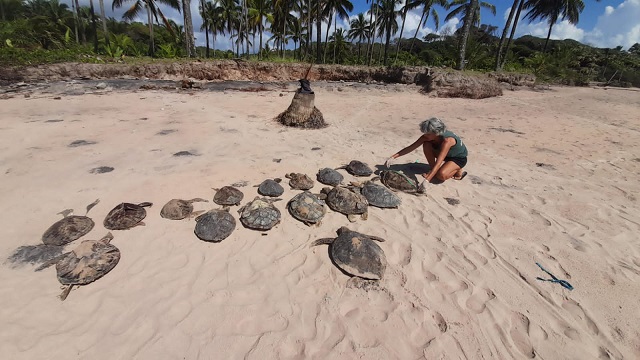 ONG encontra 16 tartarugas mortas em praia da Bahia e denuncia crime ambiental
