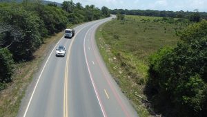 Movimentação de veículos em trecho de reforma e requalificação na rodovia estadual BA-001, na Orla Norte da cidade de Ilhéus – trecho Ilhéus-Itacaré (Joá Souza/ GOVBA).