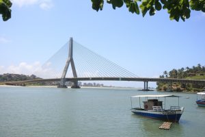 Vista da Ponte Jorge Amado, construção que faz a ligação do centro à zona sul da cidade de Ilhéus, atravessando a baía do Pontal e ligando a rodovia estadual BA-001, no Sul da Bahia (Joá Souza/ GOVBA).