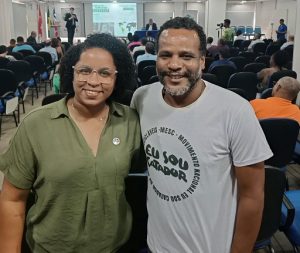 Priscilla Costa, embaixadora referência no estado da Bahia, compôs a mesa de honra do evento e, em sua saudação, enfatizou a diversidade presente no evento e a necessidade da construção de políticas públicas que contenham incentivos à coleta seletiva, atração de indústrias de reciclagem, inclusão socioprodutiva de catadoras e catadores de recicláveis, mobilização social e assessoria técnica especializada para os empreendimentos coletivos. “É preciso ter um olhar mais atento para todas as pessoas que estão envolvidas nesse processo produtivo, de ponta a ponta, conferindo-lhes dignidade e cidadania”, ressalta Priscilla.