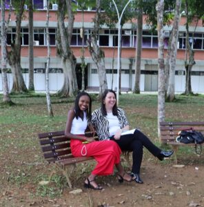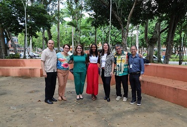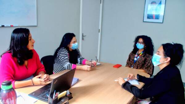 Sábado (29), uma equipe da Unesco no Brasil composta por Maria Rehder, George Patiño, coordenada por Mariana Braga, oficial de Programa do Setor de Educação, estiveram no campus da Uesc para uma entrevista com a estudante Tainá e a coordenadora do curso de Engenharia de Produção, a professora Dra. Aline Patrícia Mano.