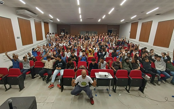 O curta metragem “Deram um Fuzil ao Menino”, do diretor Sebáh Villas Bôas, foi um dos pontos altos da sessão, conectando o público a uma reflexão profunda sobre o poderoso poema do itabunense Firmino Rocha que explora as profundezas do imaginário infantil confrontado pela violência. A juventude teve a oportunidade de conhecer mais sobre a obra audiovisual com o próprio diretor que faz parte da equipe do projeto e explicou o processo de produção do filme.