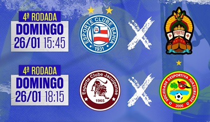 O Barcelona de Ilhéus e o Jacobina abrem a rodada na quarta-feira (22), a partir das 19h15, no Estádio Agnaldo Bento, em Porto Seguro. No sábado (25), o Atlético recebe o Jequié no Carneirão em Alagoinhas a partir das 15h45, e mais tarde, às 18h15, é a vez do Colo-Colo enfrentar o Vitória, atual líder do campeonato, na Arena Fonte Nova, em Salvador. No domingo (26) o Bahia recebe o Porto em casa, na Fonte Nova, a partir das 15h45. E fechando a rodada, Jacuipense e Juazeirense se enfrentam às 18h15 direto do Carneirão.