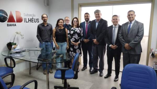Participaram da reunião, representando a OAB Ilhéus, o presidente, Dr. Jacson Cupertino, o Secretário Geral, Dr. Nelson Cunha, o presidente da Comissão da Advocacia Trabalhista, Dr. Michael Neves e o advogado trabalhista, Dr. Marcos Flávio e os diretores da Primeira e Segunda Vara, Eliete Cardoso e Manoel Evangelista, respectivamente.