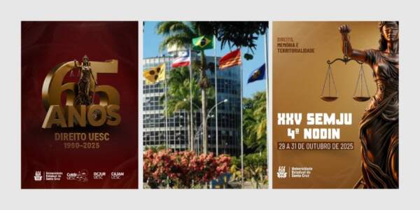 A Universidade Estadual de Santa Cruz (UESC) celebra, nesta quarta-feira, 29 de outubro, os 65 anos de implantação do Curso de Direito, marco histórico para o ensino jurídico no interior da Bahia. A solenidade comemorativa ocorrerá às 8h30, no Auditório do Centro de Arte e Cultura da Universidade, sob a presidência do reitor Professor Alessandro Fernandes e coordenação da diretora do Departamento de Ciências Jurídicas, professora Fernanda Viana, e do coordenador do Colegiado do Curso de Direito, professor Lucas Gabriel.
