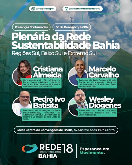 A Rede Sustentabilidade promove, na próxima sexta-feira (5), às 18h, no auditório do Sindiprev, em Salvador, o ato de filiação de Magno Lavigne, atual secretário nacional de Qualificação do Ministério do Trabalho e Emprego. No dia seguinte, sábado (6), o partido realizará um segundo ato de filiação, também às 18h, desta vez na cidade de Ilhéus, ampliando o processo de reorganização e fortalecimento da legenda no estado.