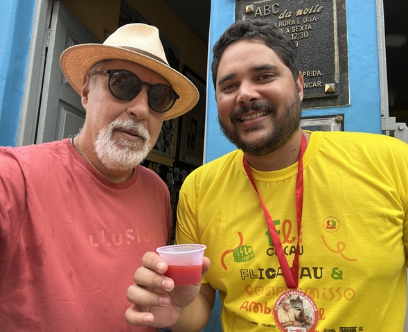 De passagem por Itabuna, onde prestou com a competência que lhe é peculiar a assessoria de imprensa da Flicacau, o editor do site Pimenta, Thiago Dias, cumpriu o roteiro sagrado: conheceu o ABC da Noite no Beco do Fuxico e pediu a devida benção ao Caboclo Alencar.