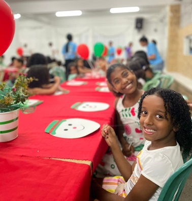 Cerca de 100 famílias — incluindo adultos e crianças — participaram da Ceia, que contou com um culto, apresentações musicais, entrega de presentes para as crianças, distribuição de panetones e sorteio de diversos itens.