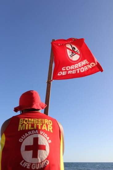 “Nós indicamos com uma bandeira vermelha para que os banhistas não adentrem esse local. Caso o banhista caia na corrente de retorno, indicamos que mantenha a calma, não se desespere, peça ajuda e nunca nade em direção à praia, mas paralelo a ela, saindo lateralmente da corrente”, orienta o bombeiro Bruno.