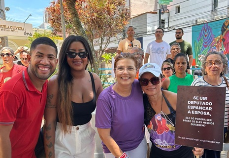 Para Adélia Pinheiro, que participou da manifestação na cidade do sul da Bahia, a sociedade brasileira não vai admitir que o Congresso Nacional crie leis para beneficiar quem atentou contra a democracia, como os recém-condenados por golpe de Estado. Caso contrário, viverá sob permanente ameaça de perda de direitos políticos e sociais.