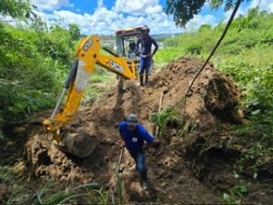 A Empresa Municipal de Águas e Saneamento (EMASA) mobilizou equipes de campo para realizar uma manutenção corretiva na rede de 60 milímetros que atende a parte alta do bairro Manoel Leão. O objetivo é restabelecer o fornecimento de água o mais breve possível, após a identificação de um vazamento em uma área de vegetação densa.