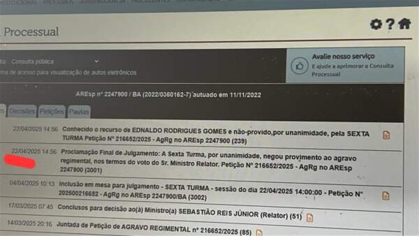 O jornalista Oscar Paris voltou a vencer mais uma batalha contra o todo-poderoso presidente da Confederação Brasileira de Futebol, Ednaldo Rodrigues, após 22 anos de um processo aberto na Justiça pelo mandatário da CBF. Desta vez pela unanimidade em 6×0, a Justiça negou o recurso interposto por Ednaldo na 6ª turma do Superior Tribunal de Justiça (STJ), em decisão monocrática do ministro Sebastião Reis Júnior.