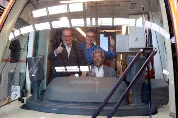 “A CAF nos deu como garantia que, no dia 5 de dezembro, esse trem chegará em Salvador totalmente pintado, com um design em homenagem ao subúrbio e à Bahia. No dia 10 de dezembro, já começam os testes estáticos, móveis. Depois disso, por exigência dos padrões técnicos, a CAF precisa de seis meses para fazer os últimos testes, enquanto isso, a CTB conduz a montagem dos trilhos finais para que a gente possa transportar gente já no segundo semestre de 2026”, explicou Jerônimo Rodrigues.