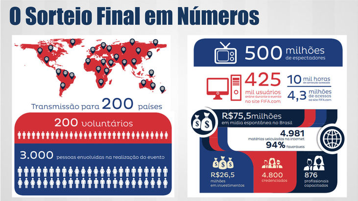 Os números foram apresentados pelo secretário Ney Campello, titular da Secretaria Estadual para Assuntos da Copa do Mundo da Fifa Brasil 2014 (Secopa), nesta terça-feira (15) em evento na Arena Fonte Nova, em Salvador. Os dados compõem o ‘Estudo de Impacto do Sorteio Final’, uma análise promovida pelo Governo da Bahia, por meio da Secopa, e desenvolvida por empresa contratada – a Prospecta Consultoria -, que avaliou diversos setores impactados de maneira direta ou indireta pelo Final Draw.