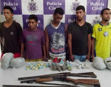 Uma operação deflagrada pela Delegacia Territorial (DT) de Jacobina desarticulou uma quadrilha envolvida em assaltos a propriedades rurais, tráfico e homicídios, naquela região. Cinco pessoas foram presas e um adolescente apreendido, além de cinco armas, três delas de grosso calibre, mais de 6 quilos de maconha, meio quilo de cocaína e 200 gramas de crack.