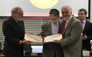 O artista plástico Frans Krajcberg recebeu do Ministério Público da Bahia o prêmio J.J. Calmon de Passos, honraria que reconhece pessoas ou organizações que prestaram serviços à sociedade. A solenidade aconteceu nesta quinta-feira (13) à tarde na sede do Ministério Público da Bahia, no CAB, em Salvador, com as presenças do governador Jaques Wagner, da primeira-dama Fátima Mendonça e outras autoridades.