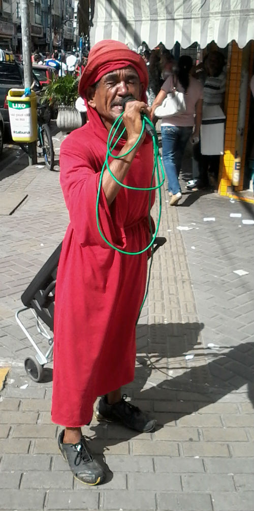Alheio à tudo, o pregador continuou seu discurso apocalíptico.
