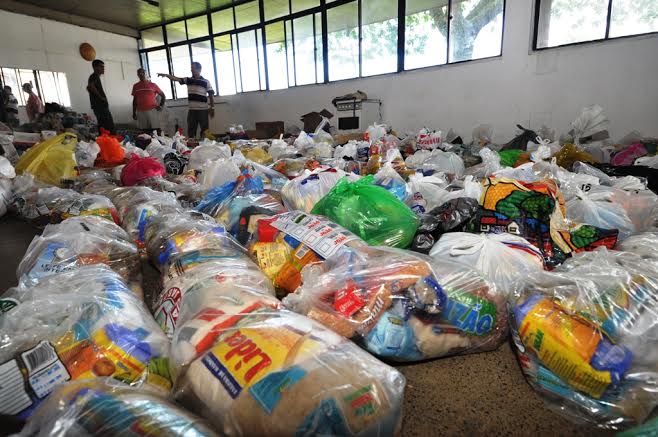 Os alimentos serão entregues às famílias que ficaram desabrigadas e estão alojadas no Parque de Exposições Antonio Setenta.